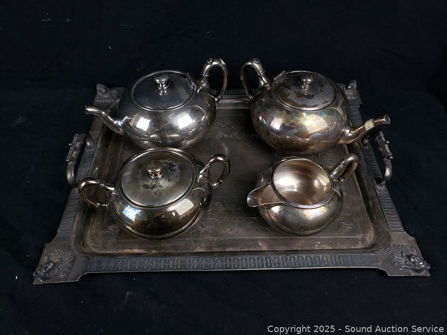 Lot #0241: Meridian Silver Plate Tea Set & Assorted Service Ware