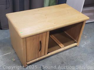 Lot #0109: Oak Rolling Media Console Cabinet