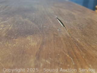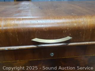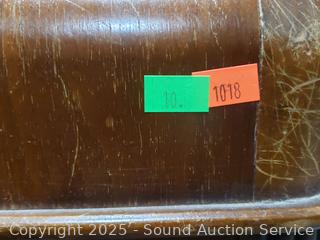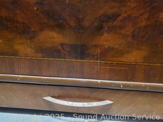 Various crazing, scuffs, scratches, crack in the top, some chipped veneer. 22" H x 45" W x 18" D.