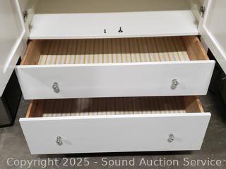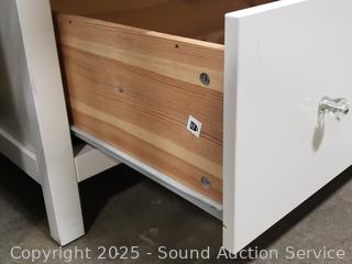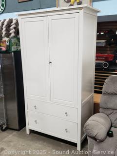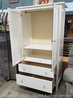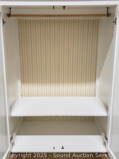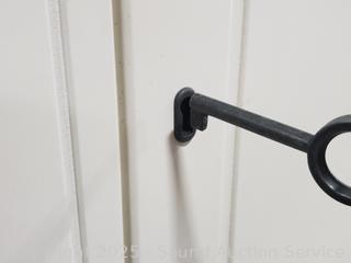 Skeleton key locking, with key. 77.5" H x 43" W x 22.75" D. Some minor scuffs, overall great condition.