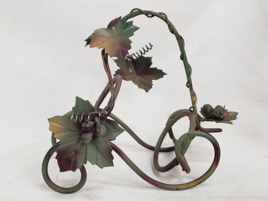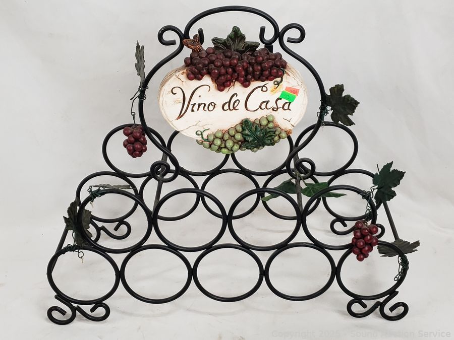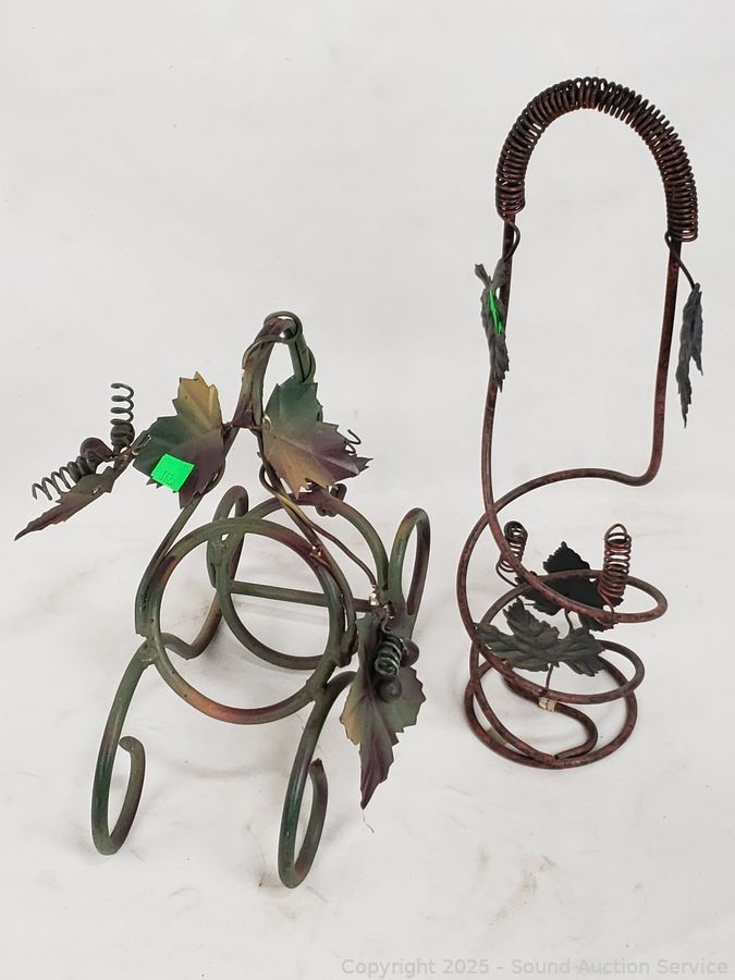 Lot #0121: 3 Wrought Iron Wine Bottle Racks & Wine Art