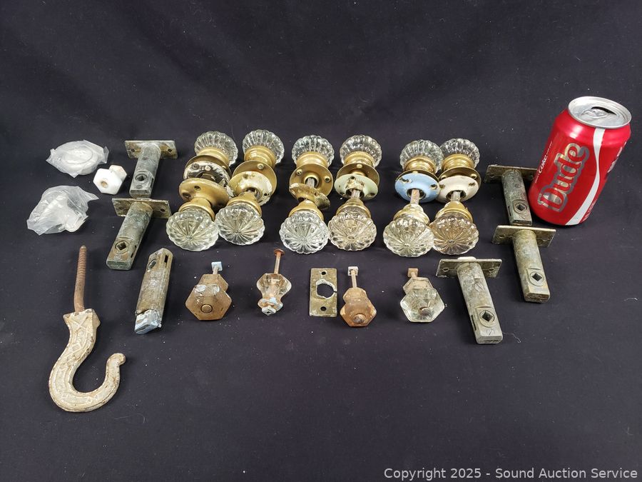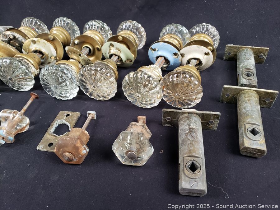 Various wear from age, use. Doorknob sets appear complete.