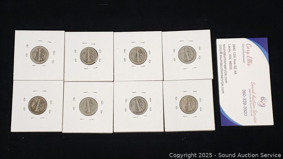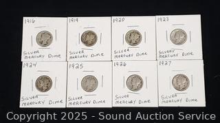 Lot #0190: (8) 1916-1927 90% Silver Mercury Dimes