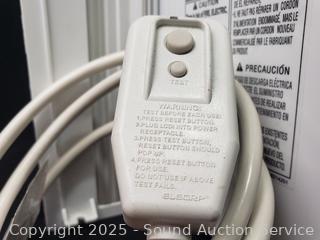 Model LW5015E. 11.5" H x 17.5" W x 15" D. Appears to be functioning as intended. Comes with window extension. Grill on the back has some damage.