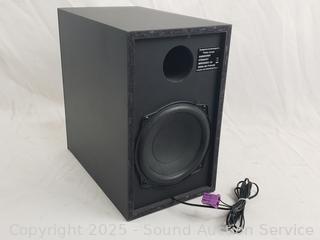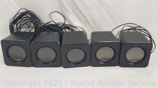 5.1 speaker set, 5 surround & subwoofer. Has power, disc tray is not functioning, won't open, maybe a stuck disc? As is.