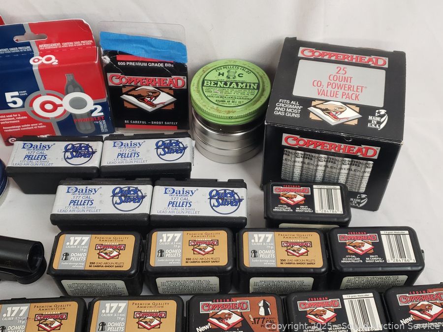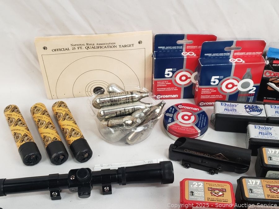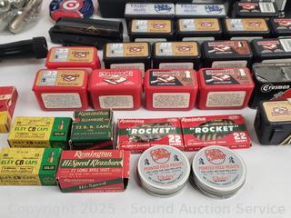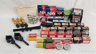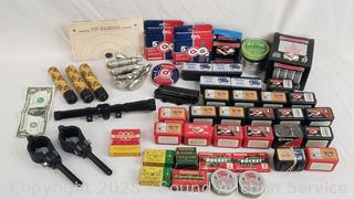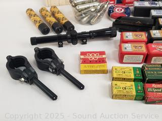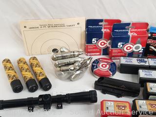 Lot #0097: Tons of Pellets, BB's, CO2's, .22 LR Ammunition & Scope