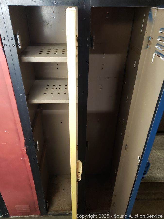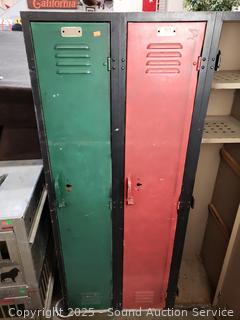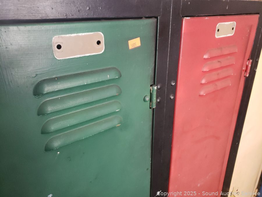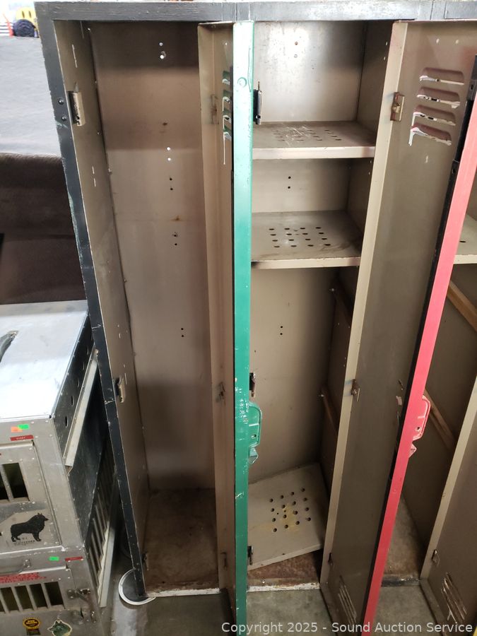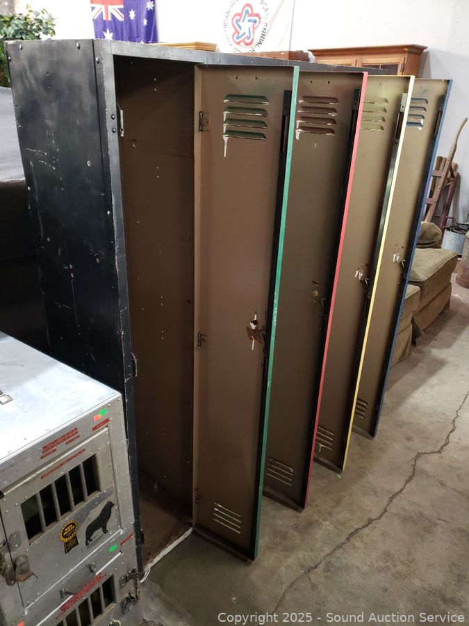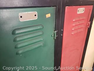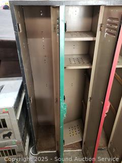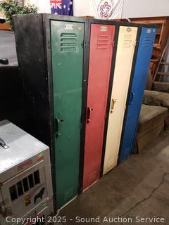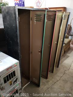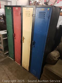 4 lockers. Various rust, wear from age, use. 60" H x 48" W x 15.25" D.