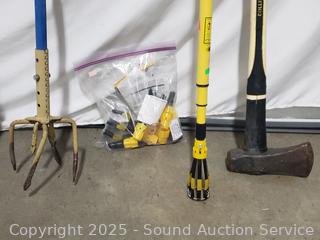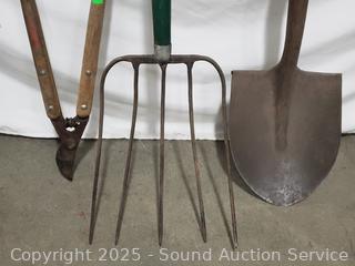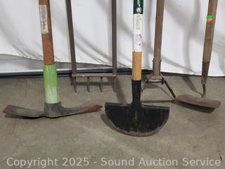 Garden claw, aerator, mattock, hoe, loppers, pitchfork, spade shovel, edger, splitting axe, etc. Refer to photos for more details.