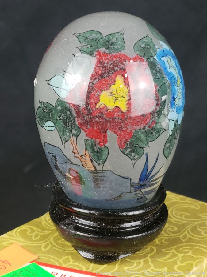 Lot #0156: 11pc Reverse Painted Glass Eggs