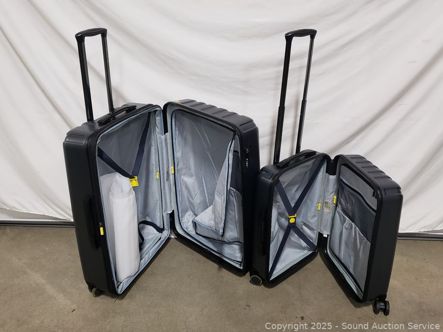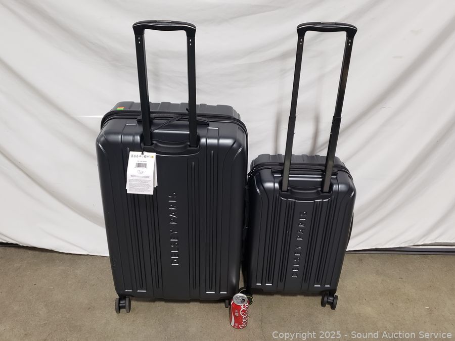 Lot #0144: 2pc Delsey Paris Charcoal Hard-Side Luggage Set