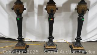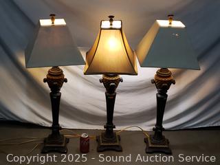 Lot #0031: 3 Basket Weave Bronze Finish Composite 36" Table Lamps