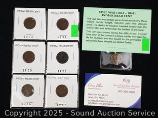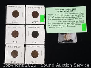 Lot #0092: 7pc Antique 1864-1907 Indian Head Cents