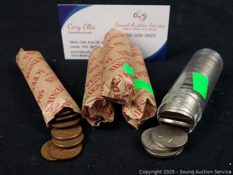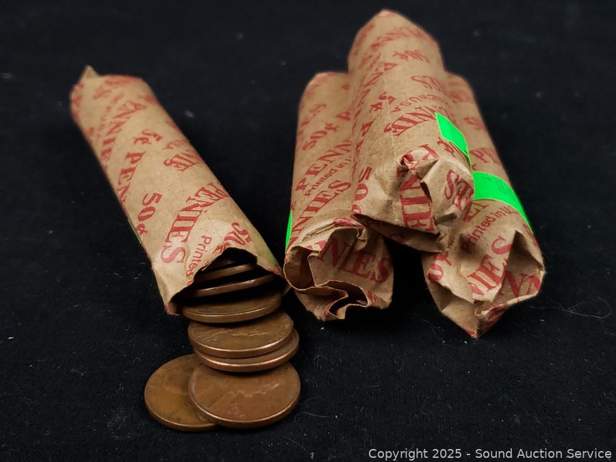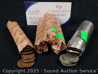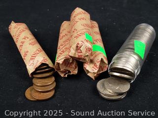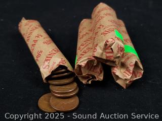 Lot #0098: 4 Rolls of Wheat Pennies & 1 Roll of Old Jefferson Nickels