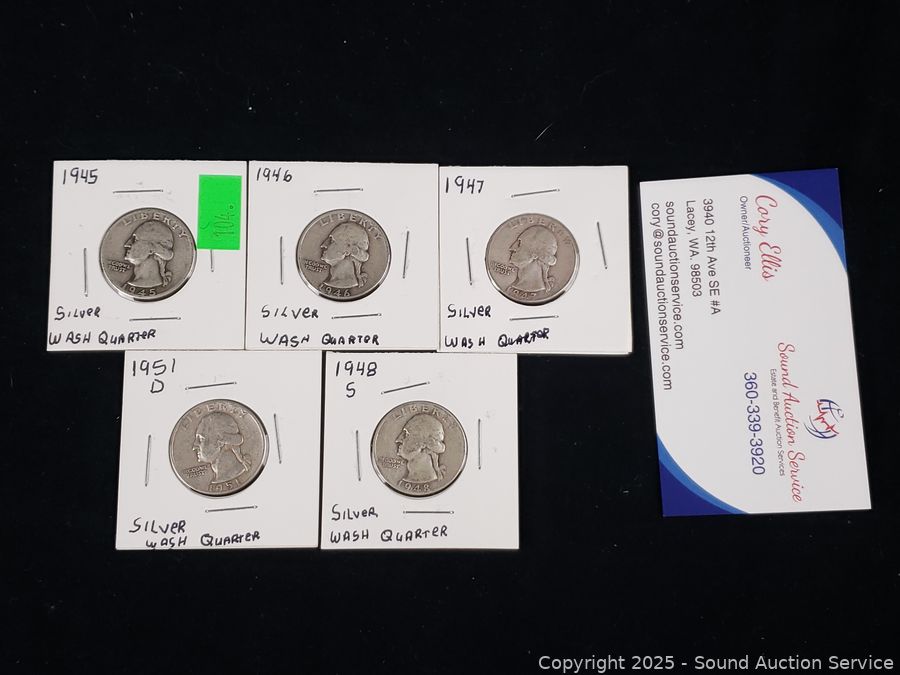 Lot #0104: (5) 1945-1951 90% Silver Washington Quarters