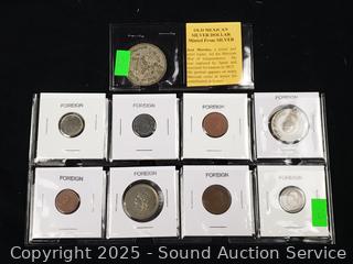 1 is an 1966 old Mexican silver dollar. ATTN: We are not coin or currency experts or graders, please use your own judgement when bidding.