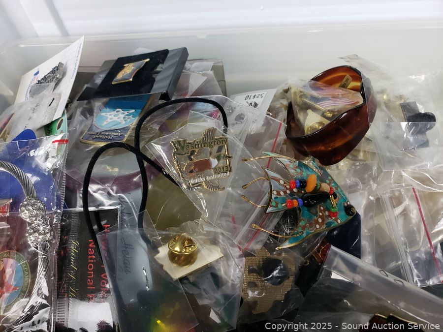 Bracelets, necklaces, rings, pins, etc.