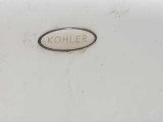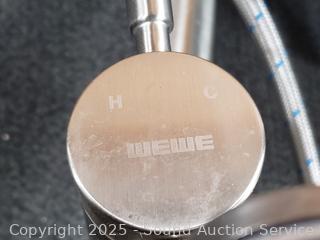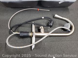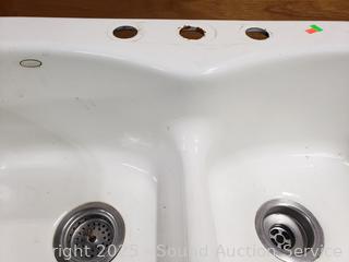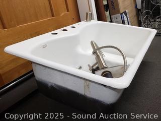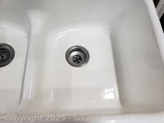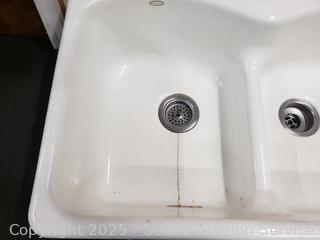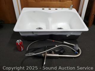 Lot #0050: Cast Iron Enamel Dual Basin Sink & Stainless Pulldown Faucet