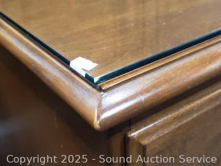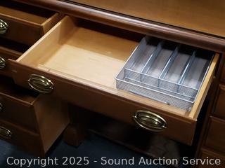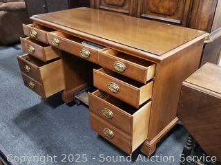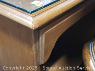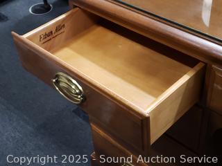 Lot #0038: Ethan Allen Maple 7-Drawer Desk w/Glass Top