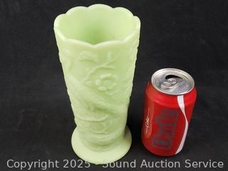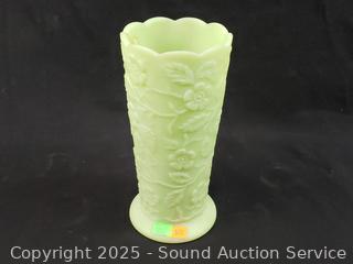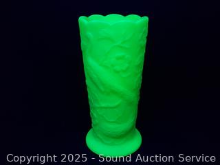 Lot #0166: Fenton Relief Uranium Satin Glass Vase