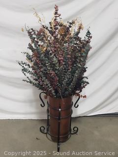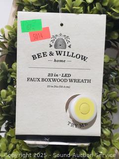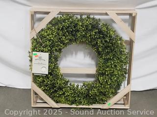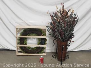 Lot #0067: Lighted Faux Boxwood Wreath & Faux Dry Floral Arrangement