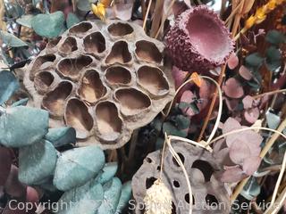 21" Dia. LED wreath, 42" H dried floral arrangement.