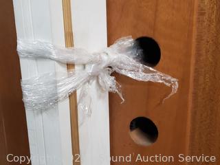 84" H x 42" W door 7.75" jamb. Some scuffs, wear to finish.
