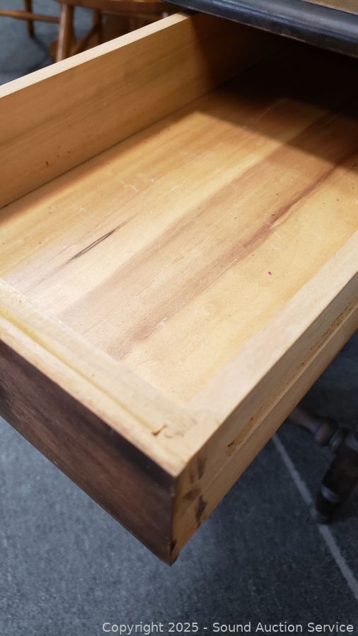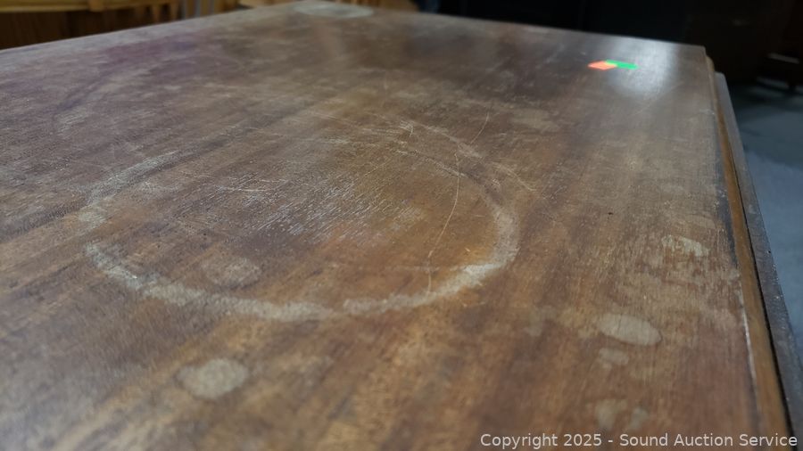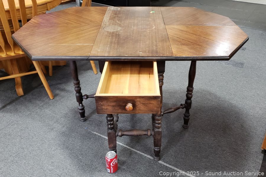 29" H x 32" x 14" with (2) 16.5" leaves. Various wear to finish.