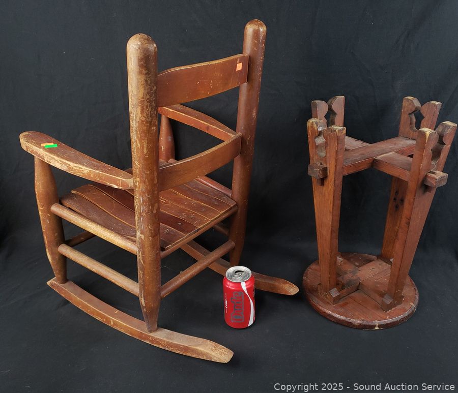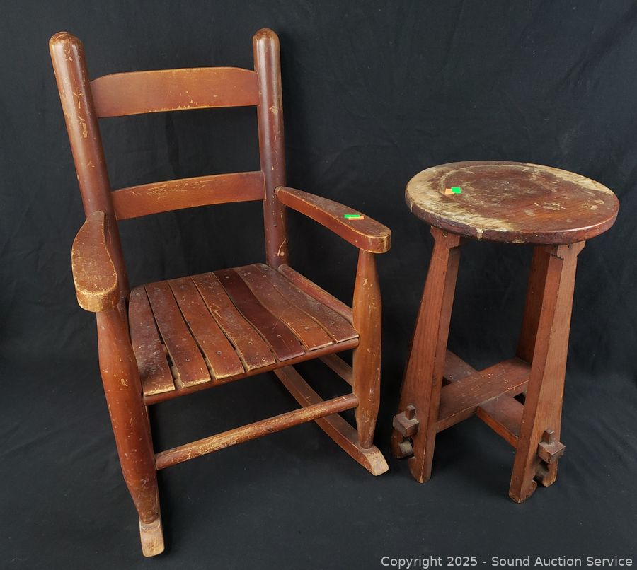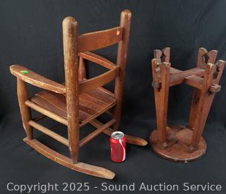 Lot #0035: Wood Stool & Childs Wood Rocker