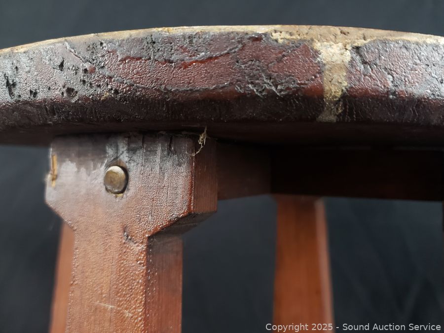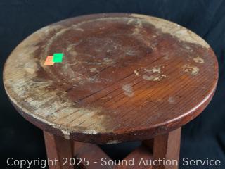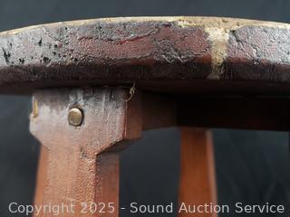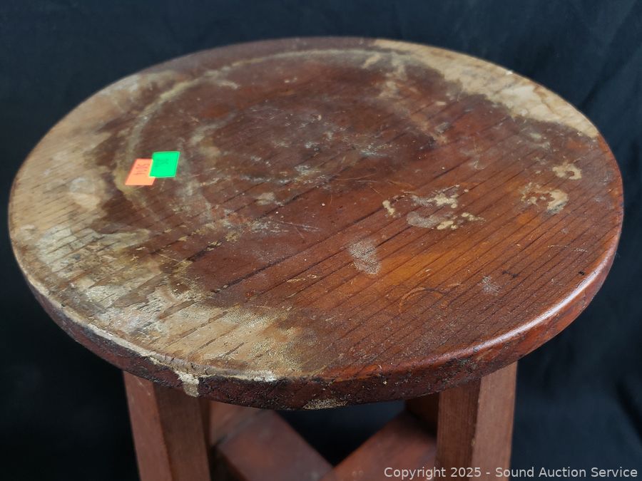Various scuffs, wear to finish. 16.5" H x 10.25" Dia. stool, 23" H x 14.75" W x 10" to seat.