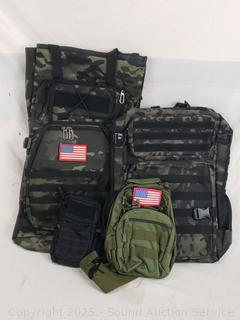 Lot #0226: 2 Tactical Backpacks, Shoulder Bag, Pouch