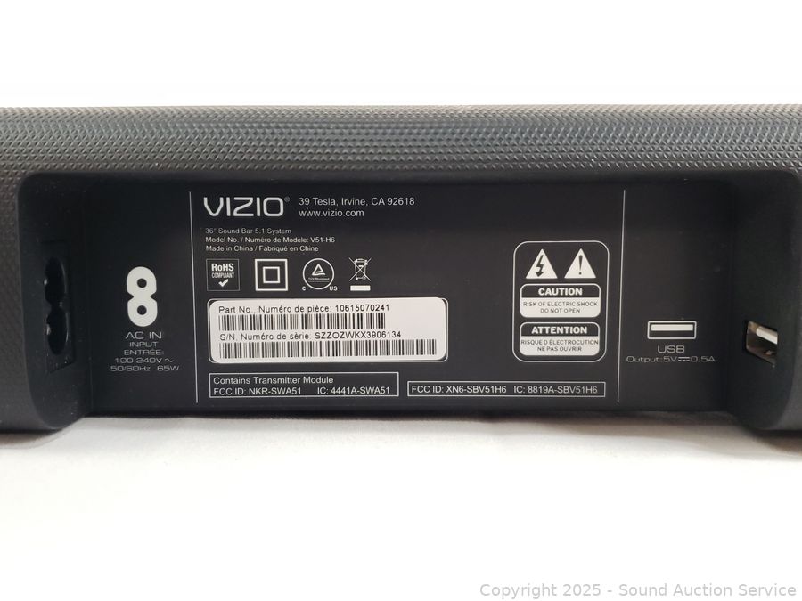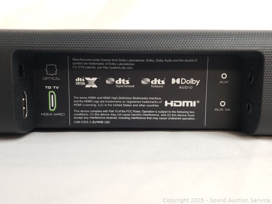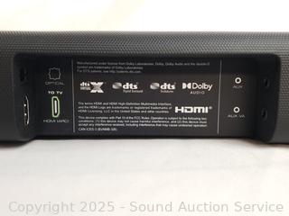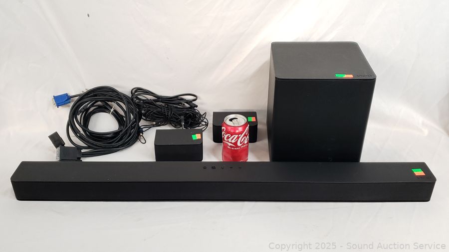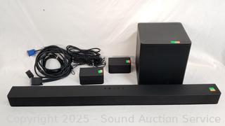 36" soundbar, subwoofer, 2 surround speakers. Appears to be functioning as intended. A few minor scuffs, overall great condition.