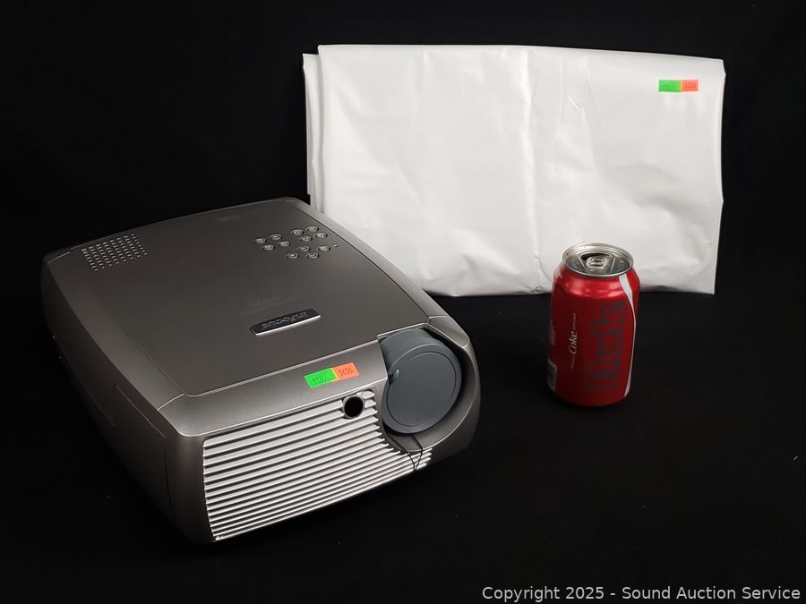 Has power, appears to be functioning as intended. Comes with white vinyl velcro screen 65" x 40", some dirty spots.
