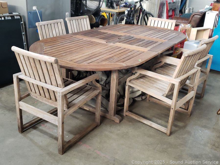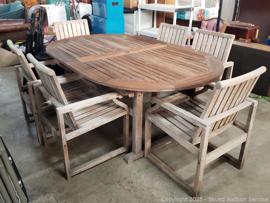 Lot #0001: Kingsley-Bate Genuine Teak Wood Outdoor Patio Table w/6 Chairs