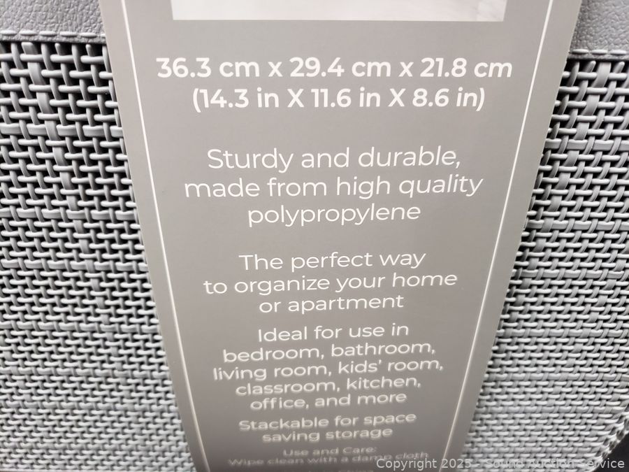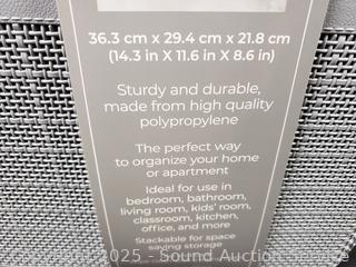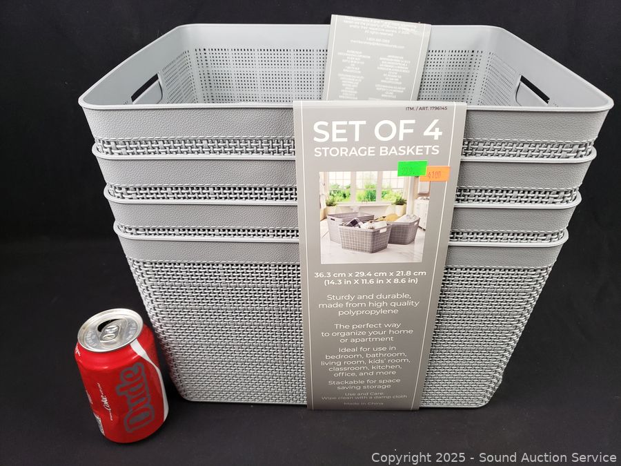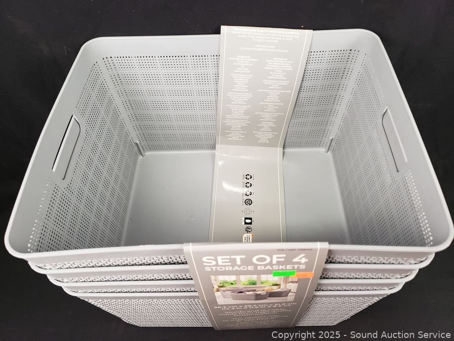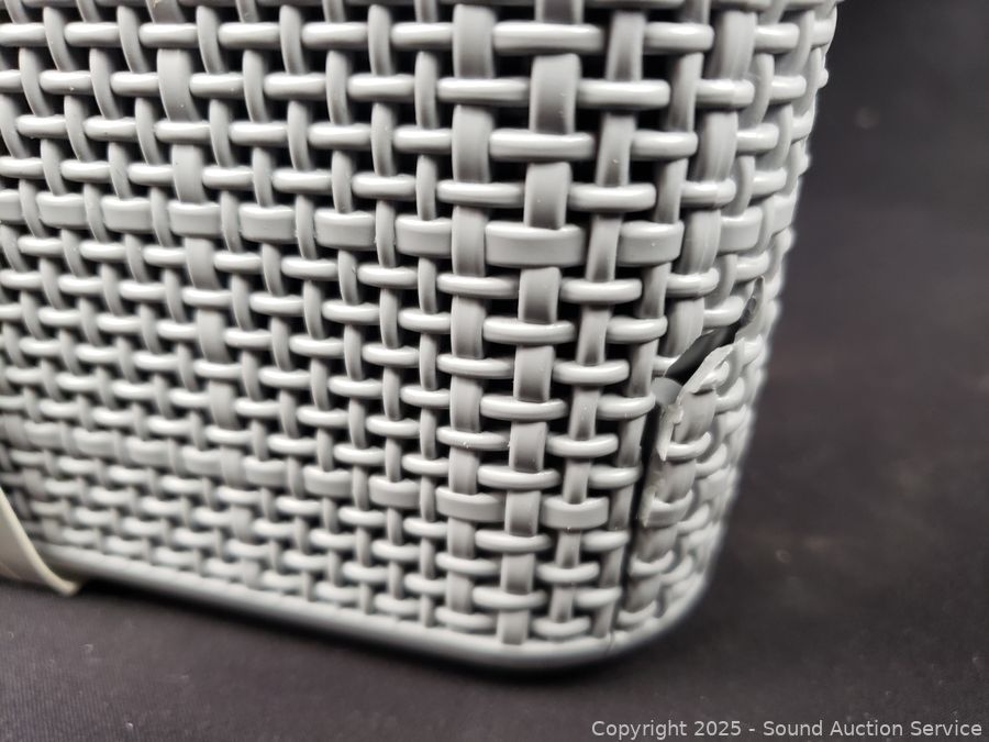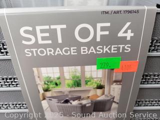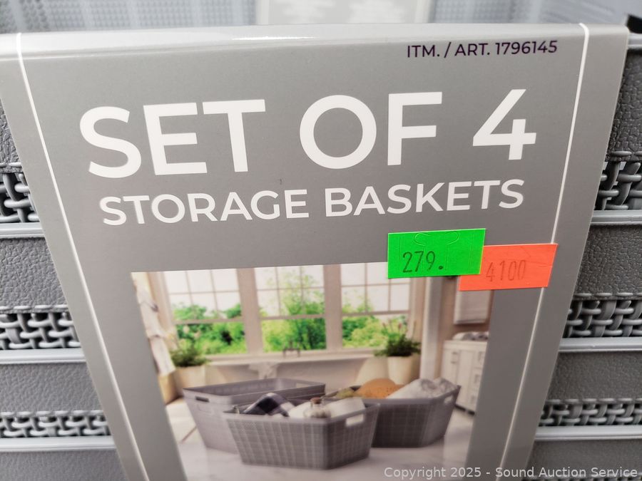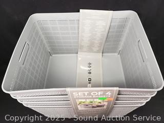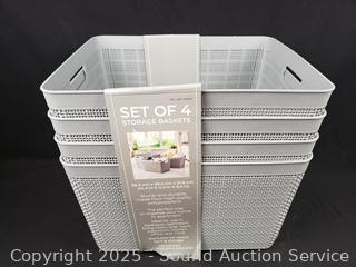 Lot #0279: Set of 4 Gray Plastic Basket Storage Boxes