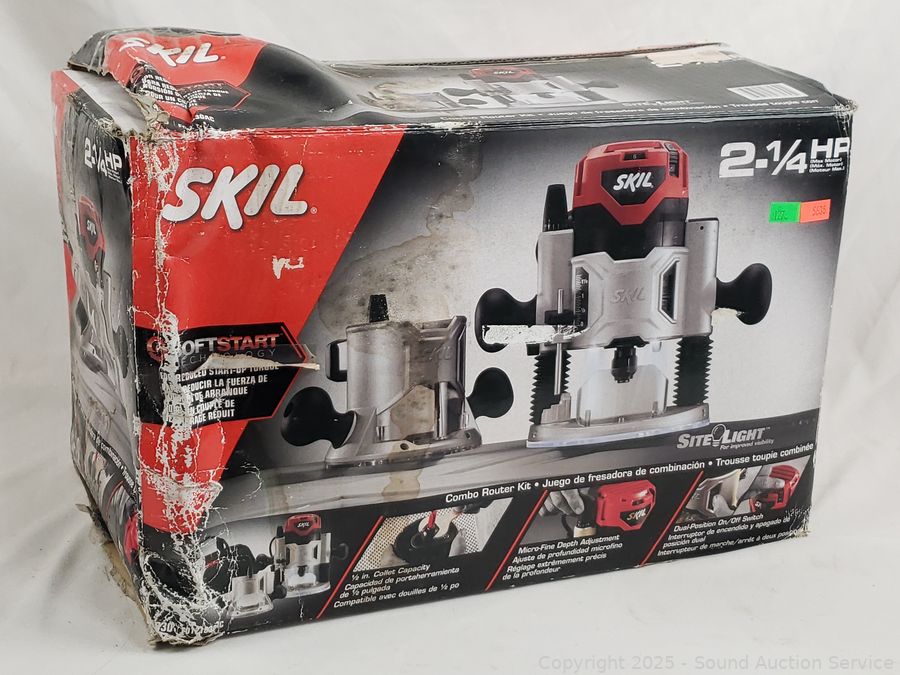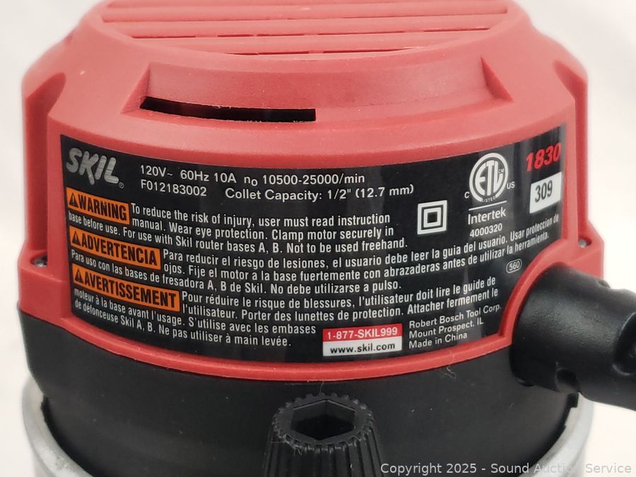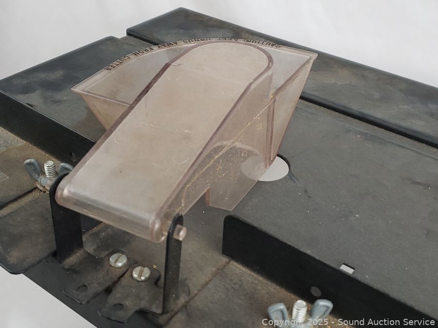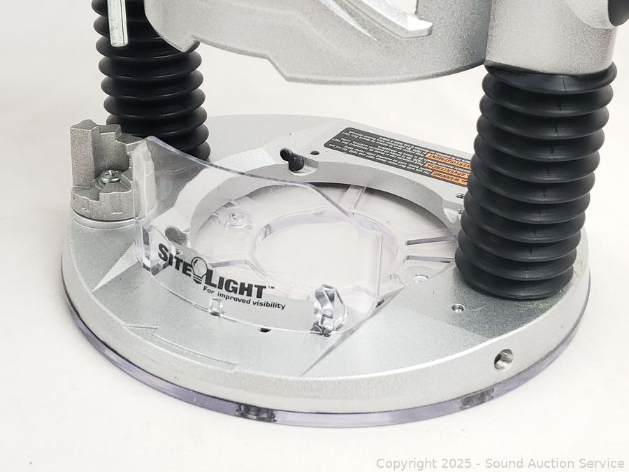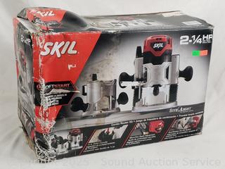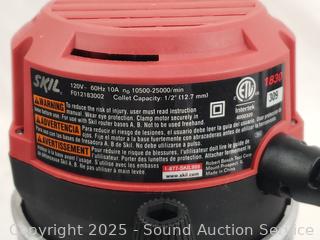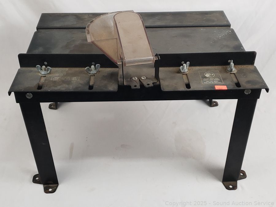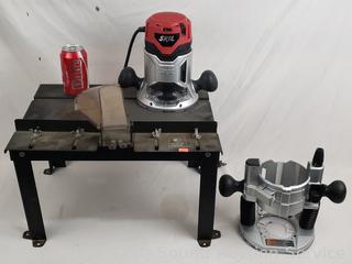 Router appears unused, complete, works. Table has some wear, 10.5" H x 13" x 18".