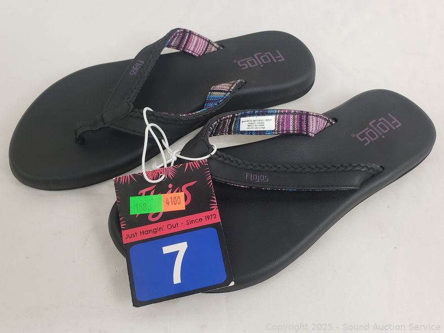 Lot #0158: Women's Flojos Black/Lavender Memory Foam Sandals S:7