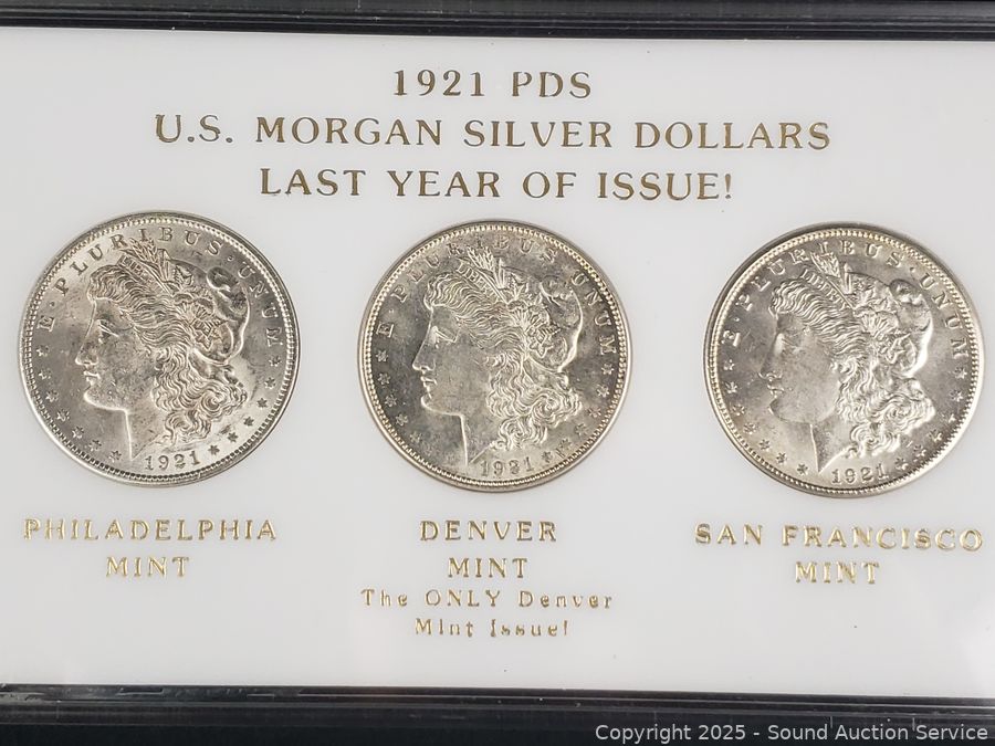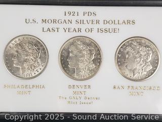 Lot #0123: 1921 PDS US Morgan 90% Silver Dollar Set
