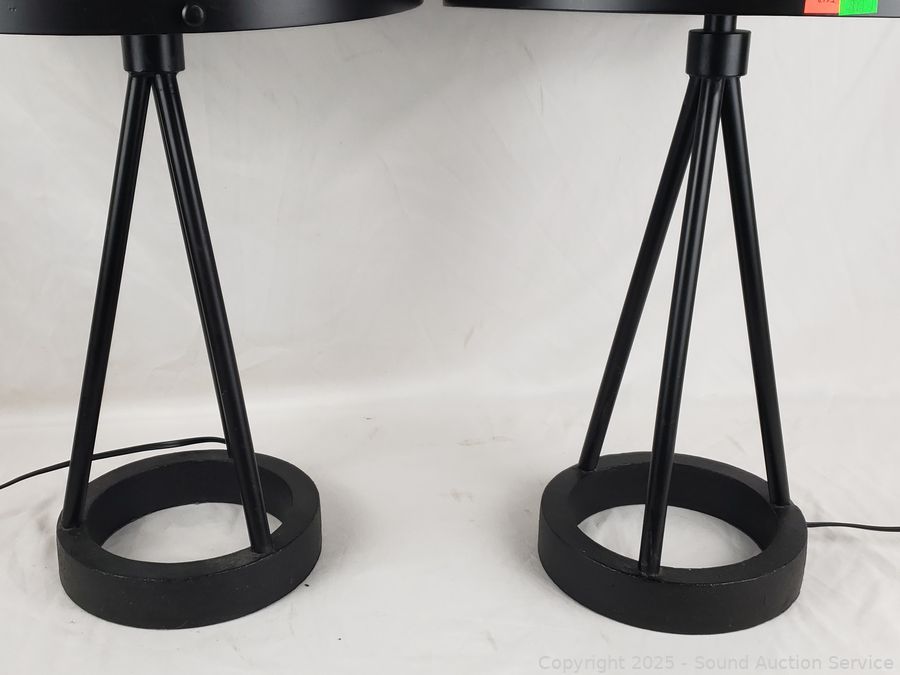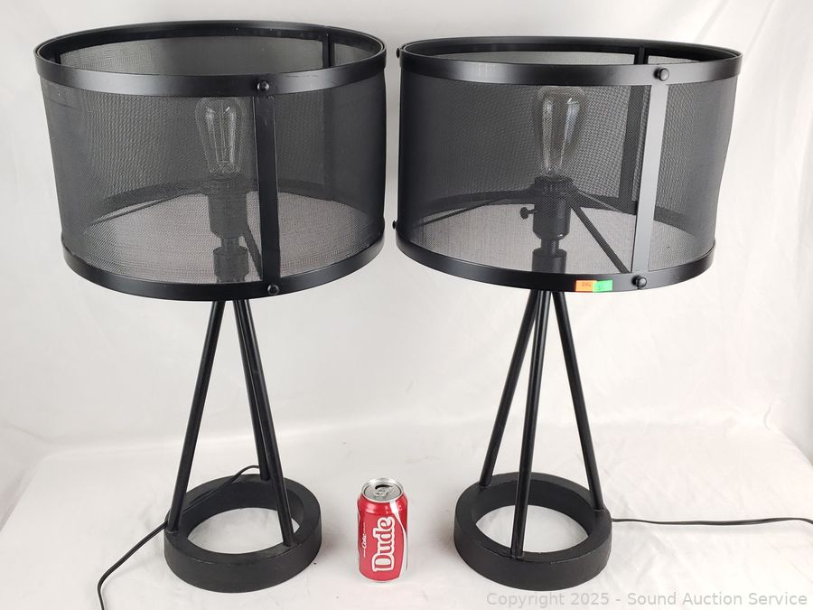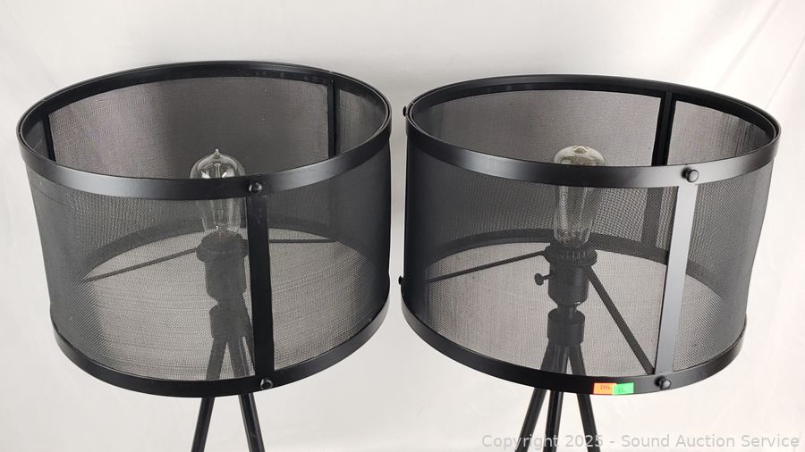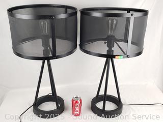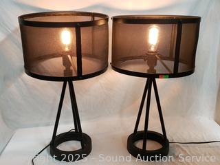 Lot #0051: 2 Black Cast Iron Base Mesh Shade 26" Table Lamps