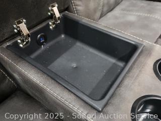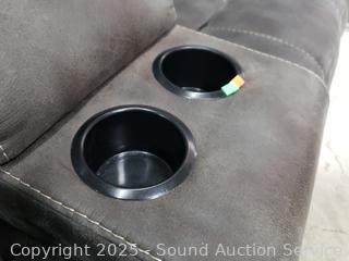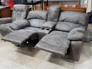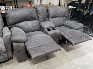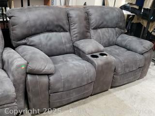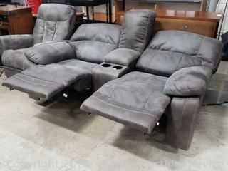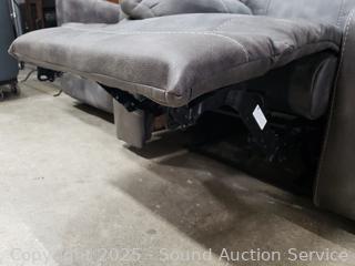Lot #0001: Gray Microfiber Upholstered Power Reclining Loveseat