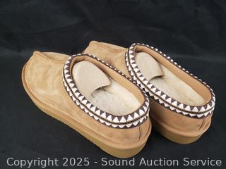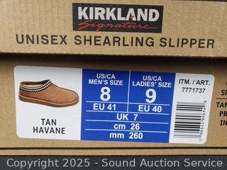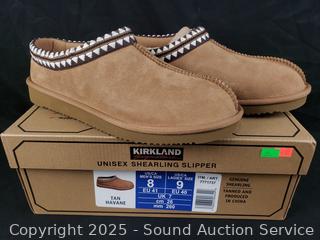 Lot #0254: Kirkland Unisex Tan Shearling Slippers S:M8|W9