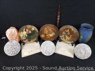 Lot #0284: Salt Lamp, Art Tiles, Pottery Vase, Collectors Plates, etc