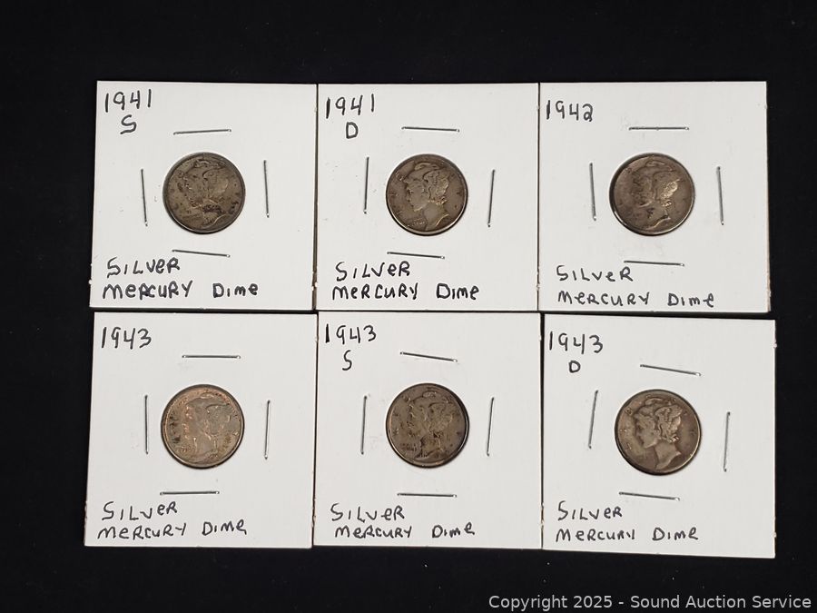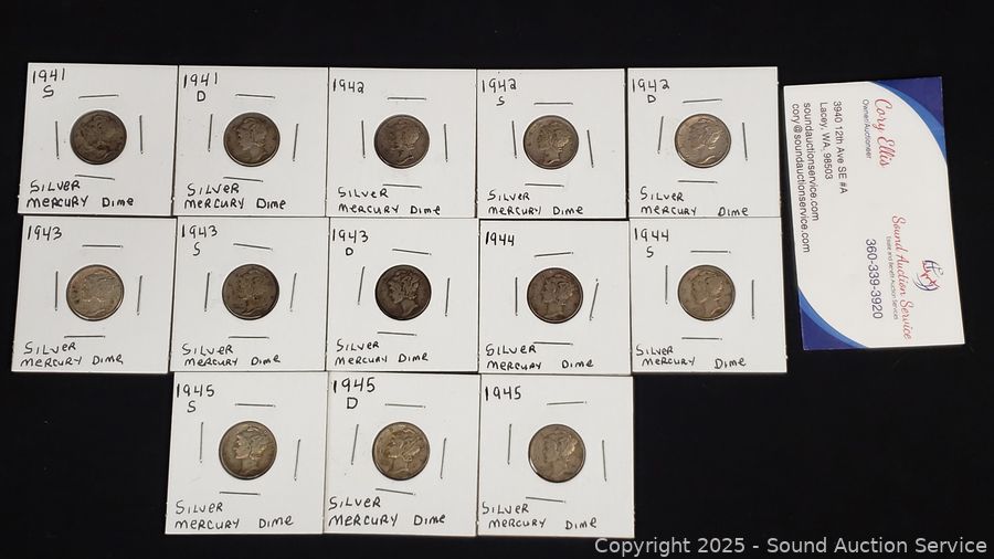 Lot #0196: (13) 1941-1945 US 90% Silver Mercury Dimes
