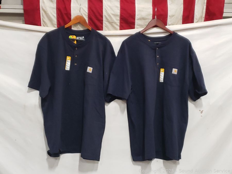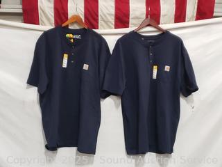 Lot #0170: 2 Carhartt Navy Long Sleeve Work Shirts S:XL