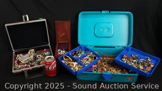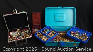 Lot #0169: 2 Cases & Jewelry Box Full of Fashion Jewelry