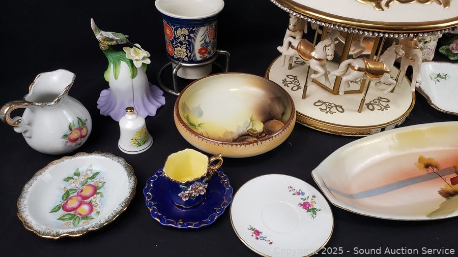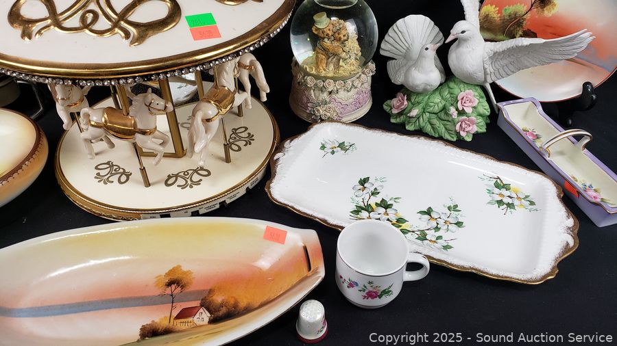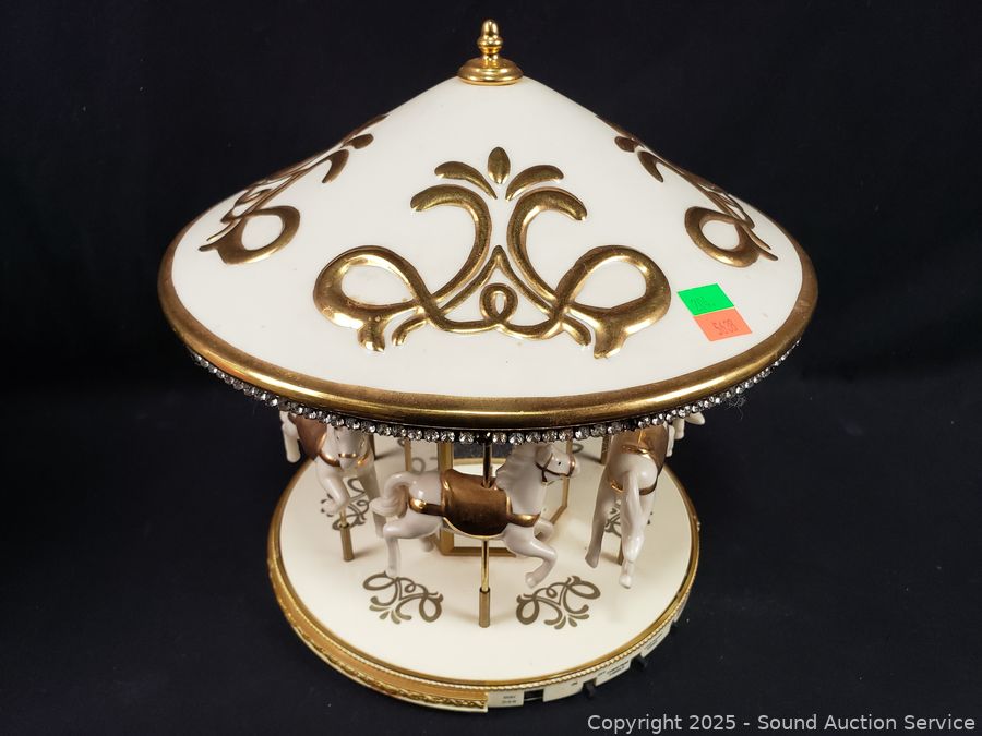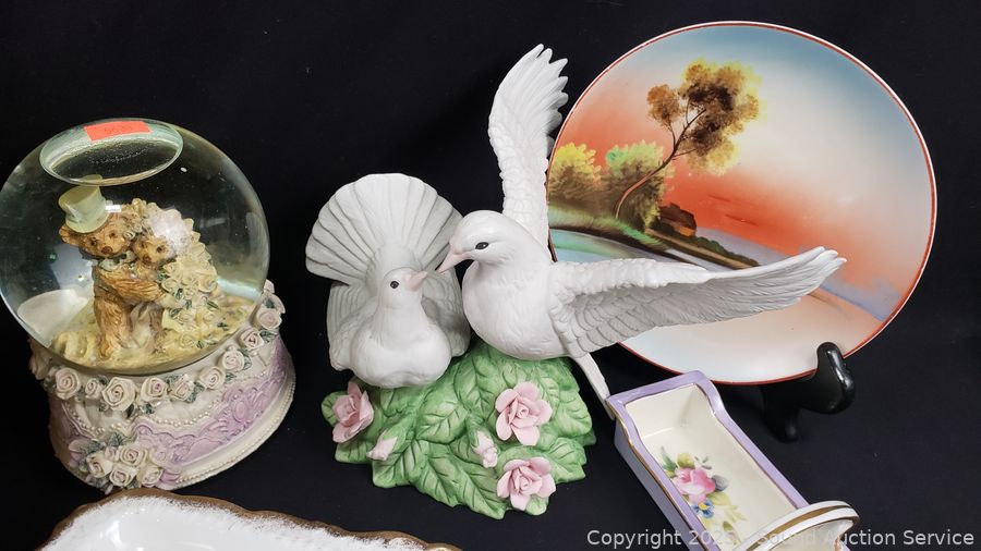 Lot #0204: Carousel, Love Doves Porcelain Figures, Waterglobe, Bell, etc.