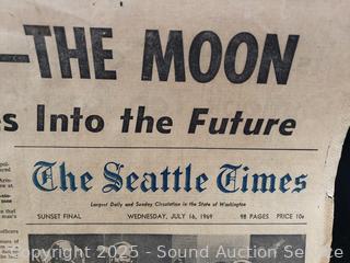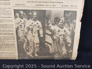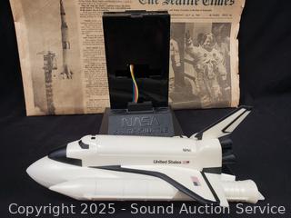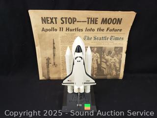 Lot #0248: July 16th, 1969 Apollo 11 Newspaper & Space Shuttle Coin Bank
