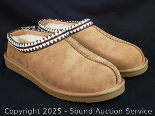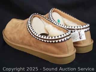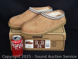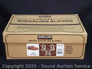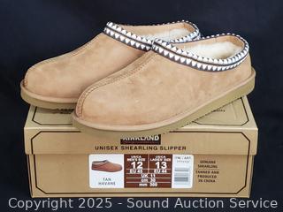 Lot #0223: Kirkland Unisex Tan Shearling Slippers S:M12|W13
