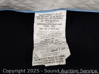 20" x 28". Removable cover. One has some small snags, don't see any issues.