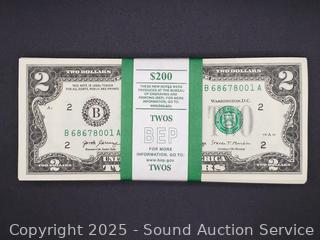 Lot #0065: $200 2017A Uncirculated Sequential Serial $2 Notes