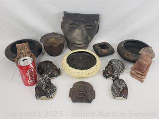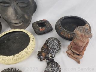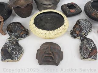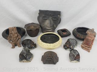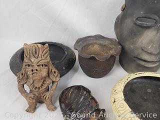 Lot #0087: Assorted Native Pottery, Carving, Figures, Mask, Pots
